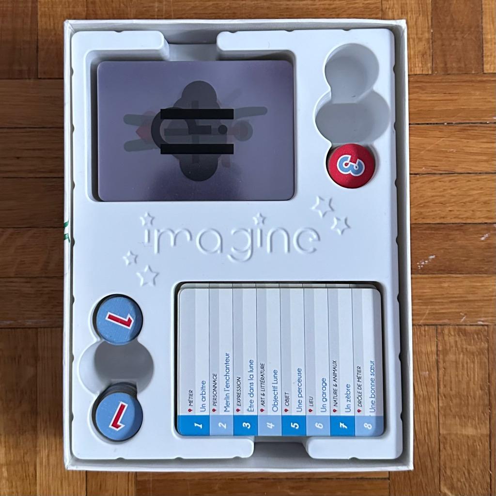 Dans Imagine, les joueurs utilisent des cartes transparentes illustrées de symboles et de formes pour faire deviner des mots, expressions ou personnages. En combinant, superposant ou animant ces cartes, on stimule la créativité et l’imagination dans un jeu d’ambiance malin et plein de rires.