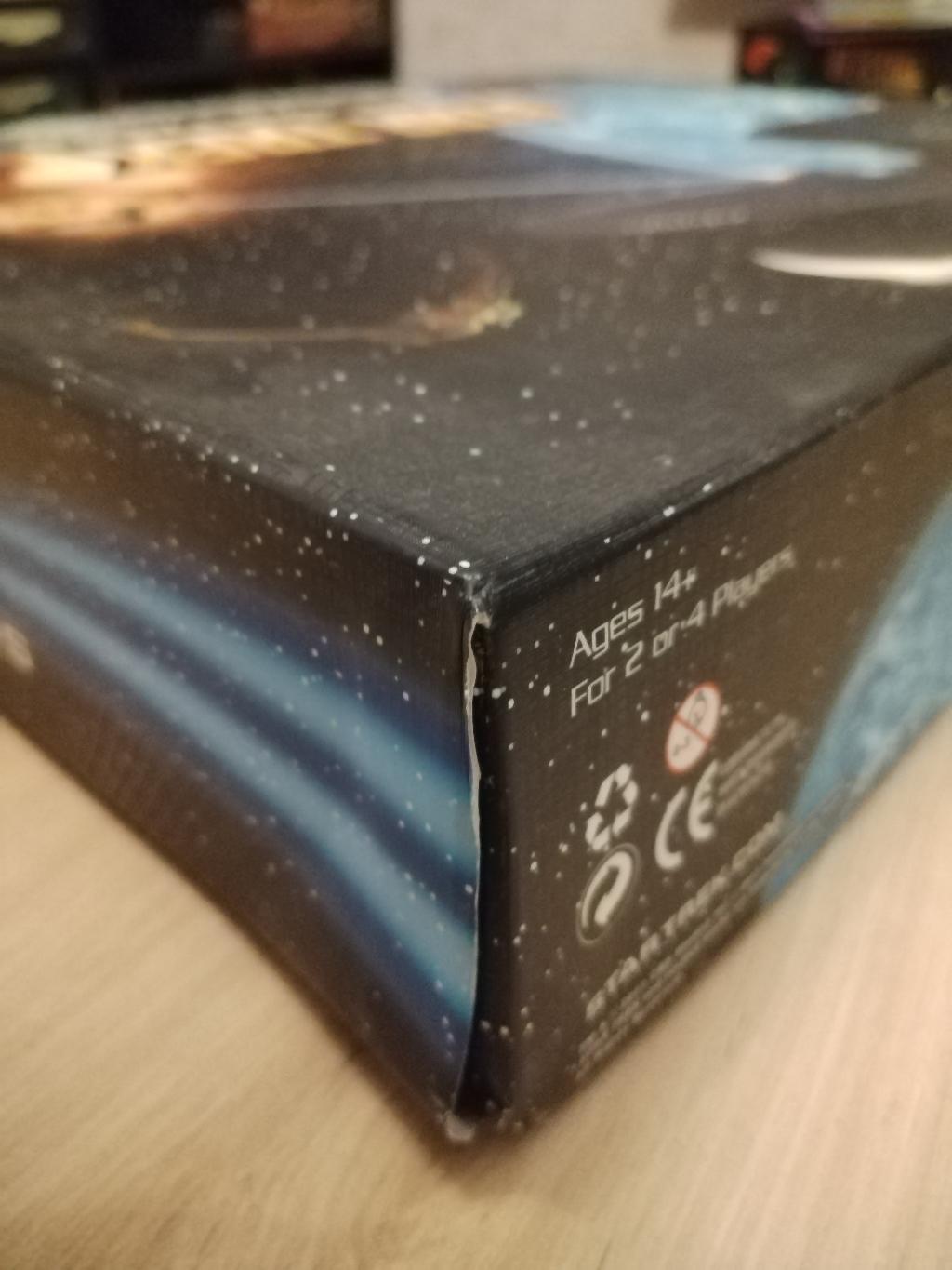 Jeu complet. Le coin supérieur droit de la boîte est un peu abîmé (voir photo). Certaines tuiles montrent quelques signes d'usure (photos sur demande). Les figurines sont en parfait état.