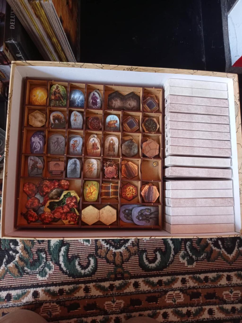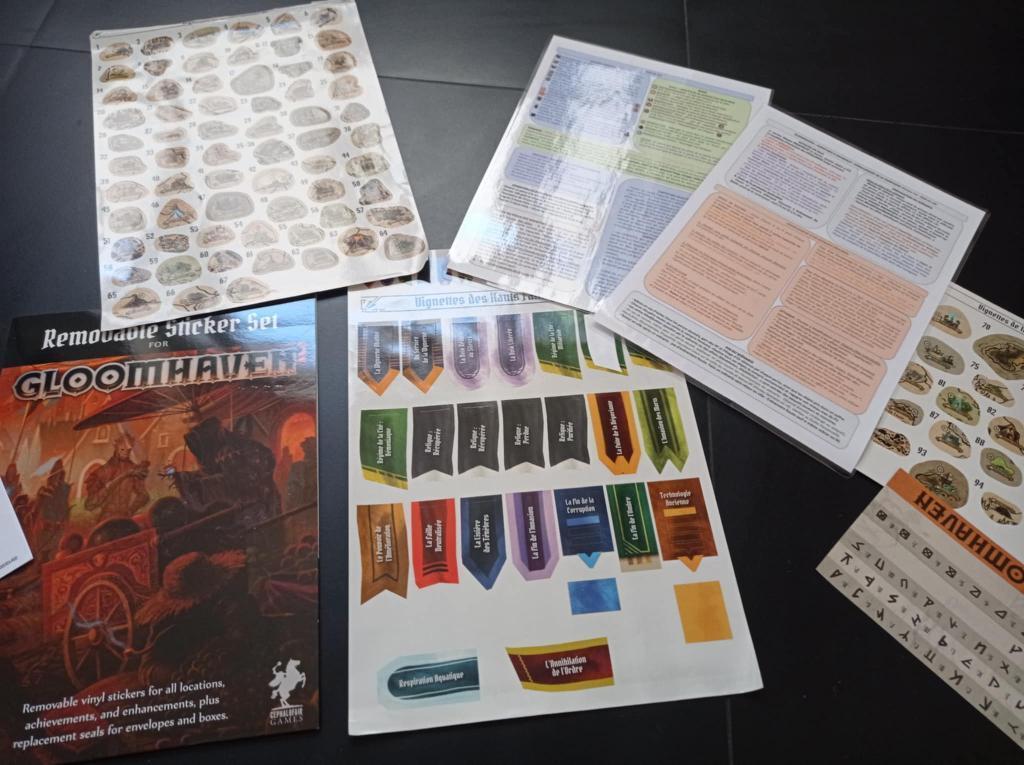 Jeu de base avec les stickers amovibles non utilisés + extension Les Cercles Oubliés, ainsi que des aides de jeu maison plastifiées.