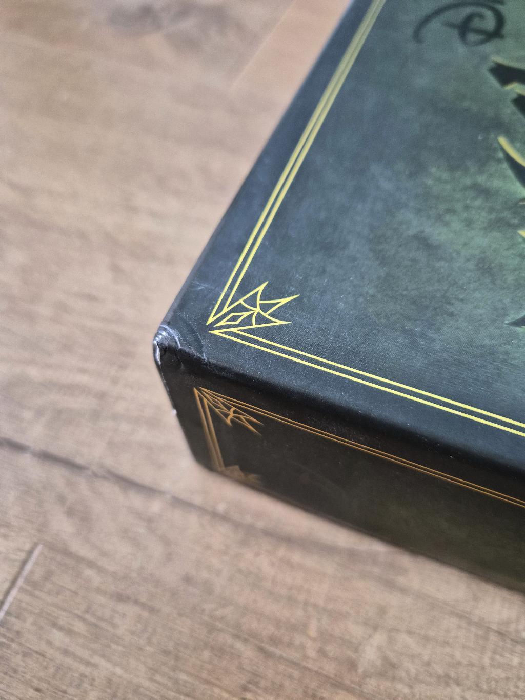 La boîte a quelques imperfections (coins légèrement enfoncés, petite ride)
