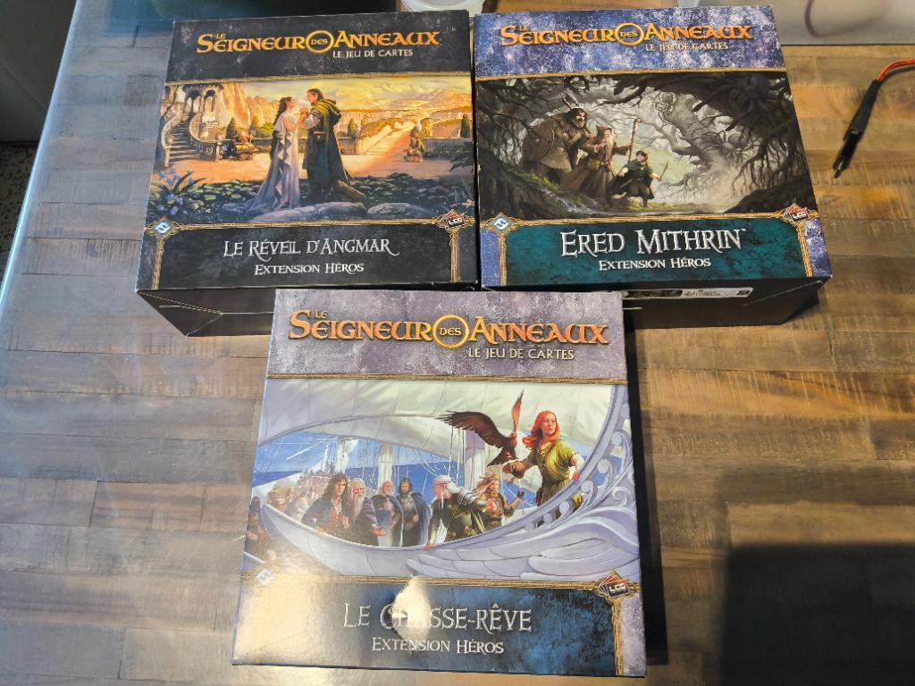 Je vends également les 2 autres extensions héros pour les seigneur des anneaux - jce: Réveil d'Angmar, Le chasse-rêve et Ered Mithrin.