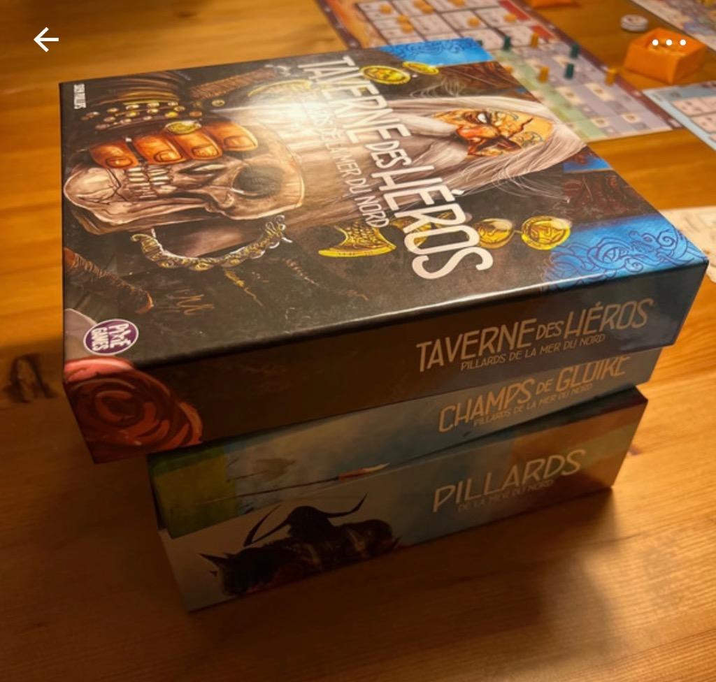 Pillards 1er édition et ses deux extensions Tavernes des Héros et champs de gloire, ensemble quasi neuf.