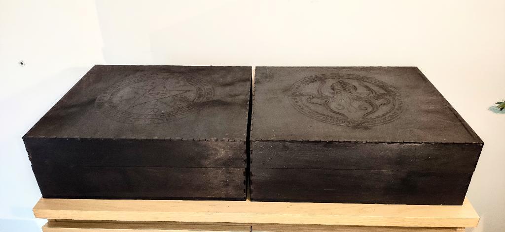 - Deux boîtes en bois customisées pour ranger les cartes joueurs et campagnes