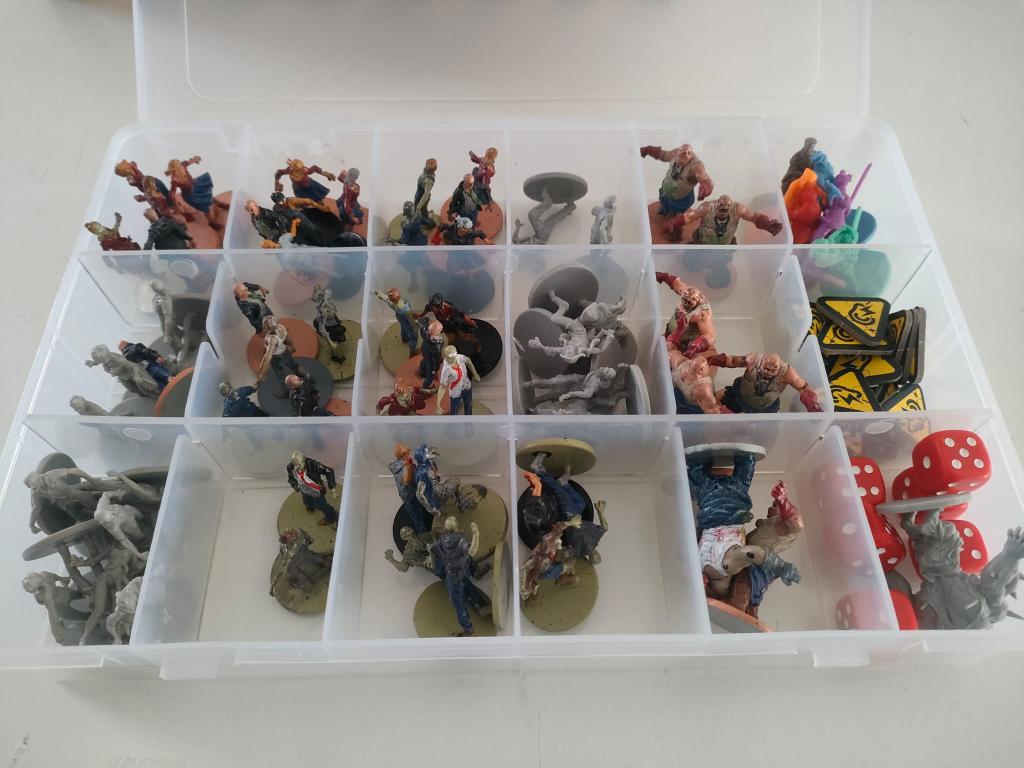 Also included in the box is the extra contents needed to play 2nd Edition (rules, pimpweapons, abomination cards, crate tokens); and the player boards, starting weapons and characters' cards.