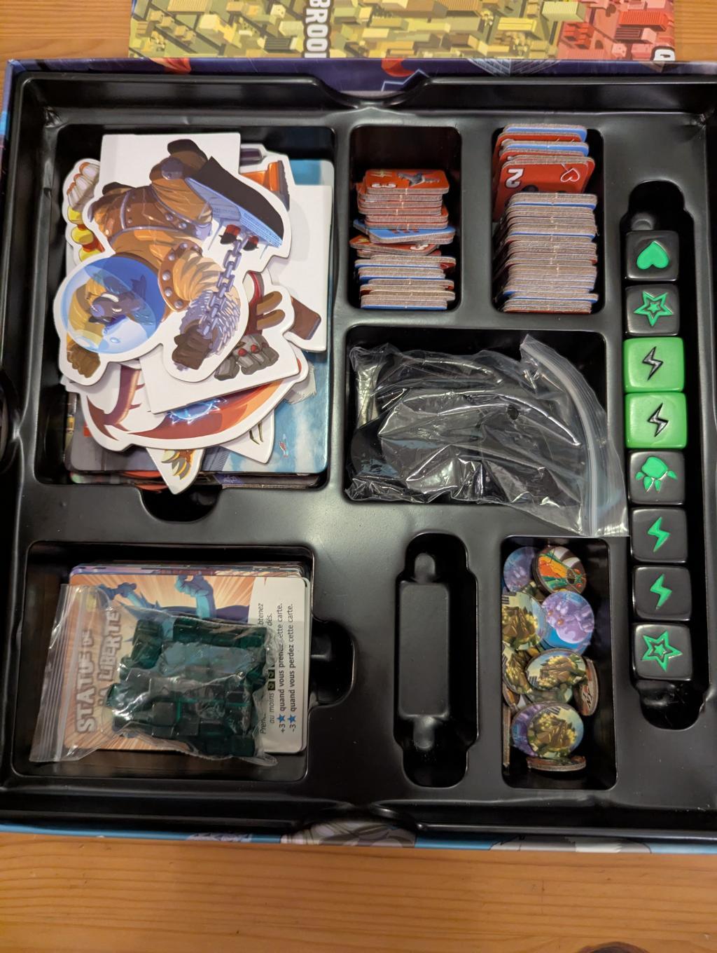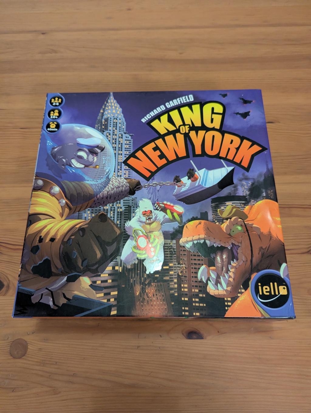 Jeu de dés et de baston où tu incarnes un monstre géant cherchant à dominer New York. Contrairement à son prédécesseur King of Tokyo, cette version propose bien plus de tactique et de profondeur. Tu dois atteindre 20 points de victoire en écrasant les immeubles, en développant des pouvoirs spéciaux, en devenant une Superstar ou en te posant en défenseur de la ville aux côtés de Lady Liberty. Les humains ne sont pas là juste pour le décor : l'armée tirera sur toi chaque fois que tu rolleras un "OUCH". Les quartiers de Manhattan ajoutent un élément territorial intéressant. Le jeu mélange chance (les dés) et tactique (les choix de cartes et de déplacement), avec une ambiance délirant et hilarante du début à la fin.