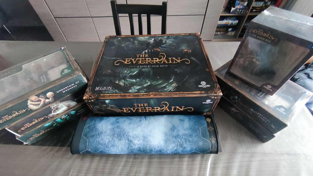 Everrain VF avec 6 extensions dont 5 sous cello + le playmat du jeu.