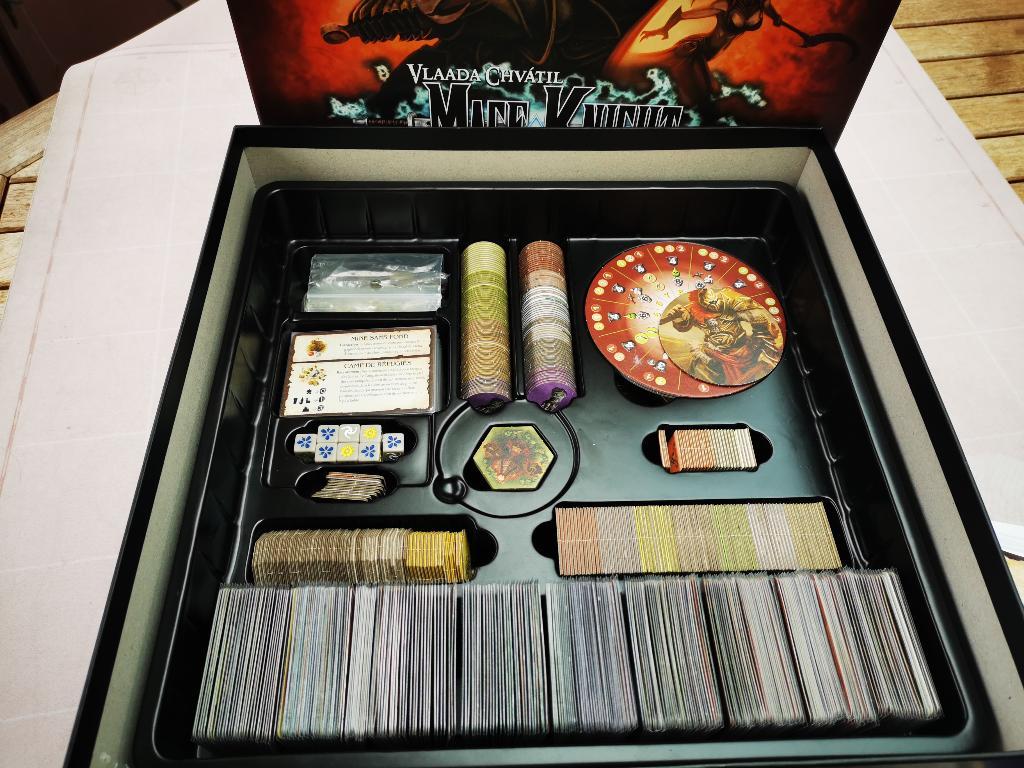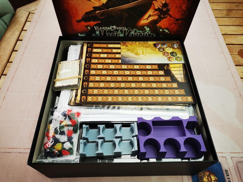Le jeu est au complet en version française intégrale avec tout le matériel en parfait état (peu joué). La boite est en excellent état, ni coins abimés ni blanchissement quelconque comme il se doit.....(hé oui, comme neuf). De nombreuses aides de jeu sont fournies ainsi que deux rangements 3D pour y mettre tout les marqueurs du jeu quand le jeu est sur la table (bien pratique pour s'y retrouver. cf photos).