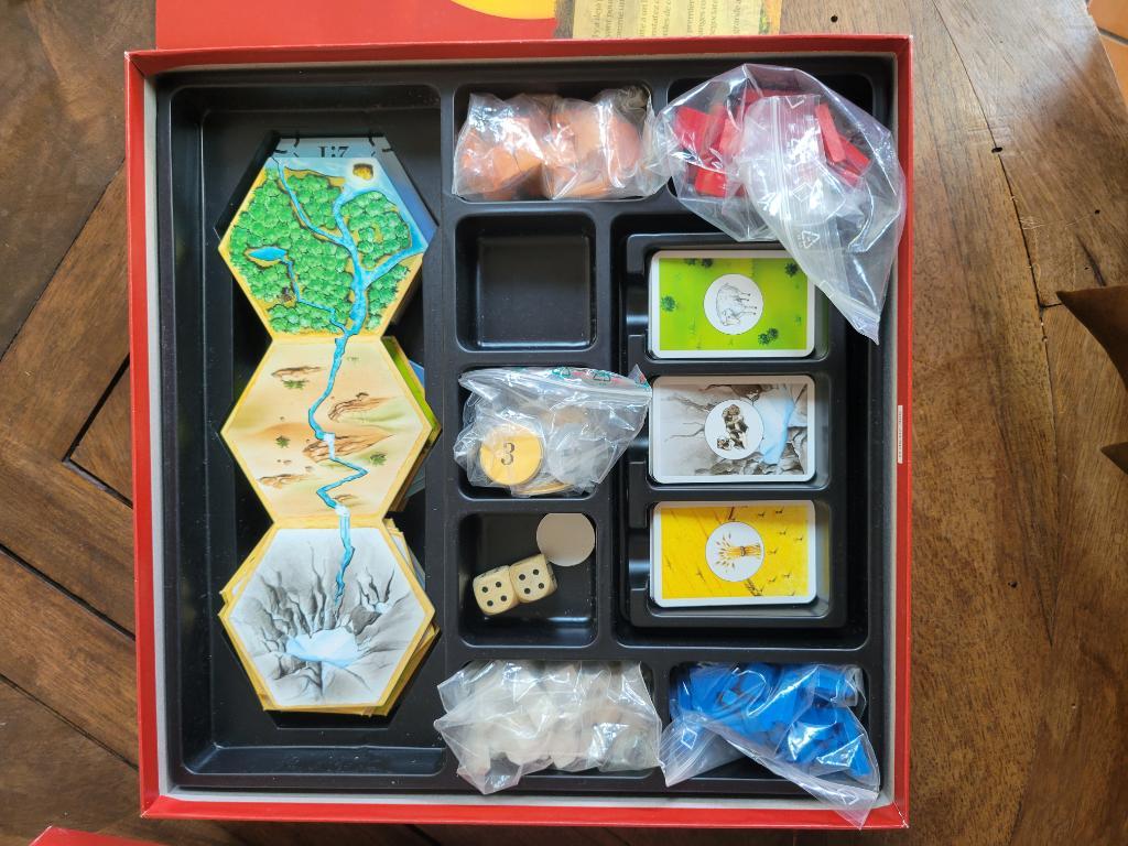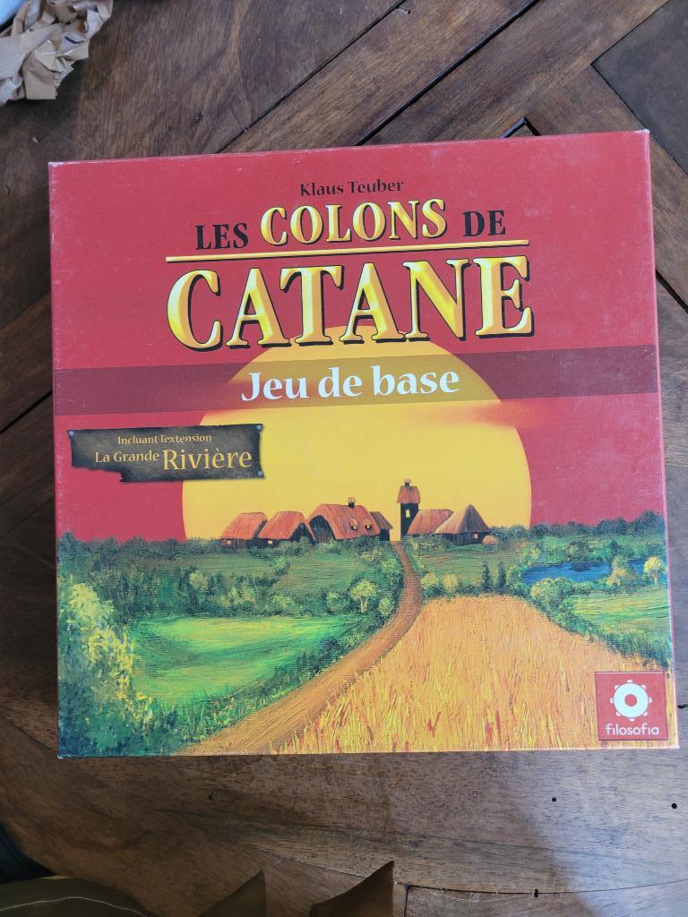 Vente du jeu de base Les Colons de Catane version 2006 avec les jetons en bois et l'extension de la grande rivière. Vendu dans la même boîte, l'extension 5/6 joueurs jamais utilisée mais sans la boîte d'origine. D'où le prix (40+20)