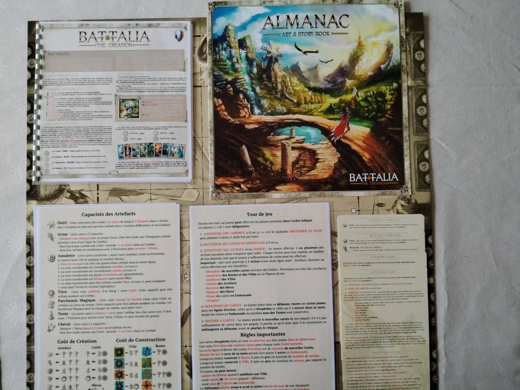 Jeu en parfait état (très peu servi). Version Kickstarter (inclus plateaux joueurs + artbook + cartes bonus). Règles VF plastifiées et reliées + 4 aides de jeu plastifiées VF).