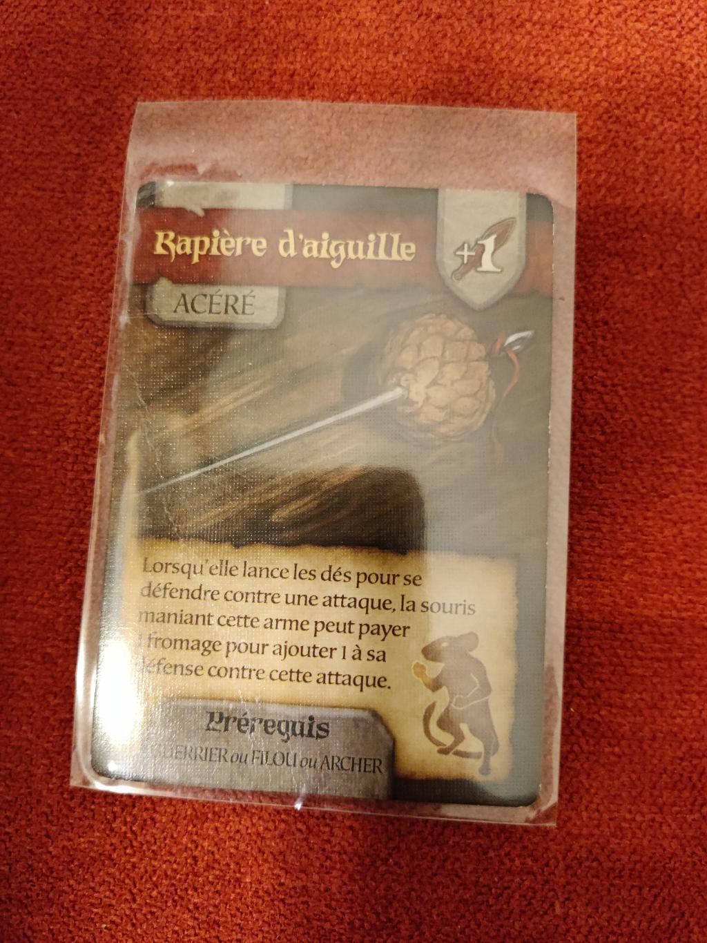 Vends la carte promotionnelle "Rapière d'aiguille" pour le jeu MICE AND MYSTICS en version française.