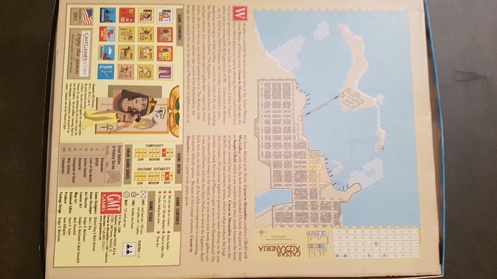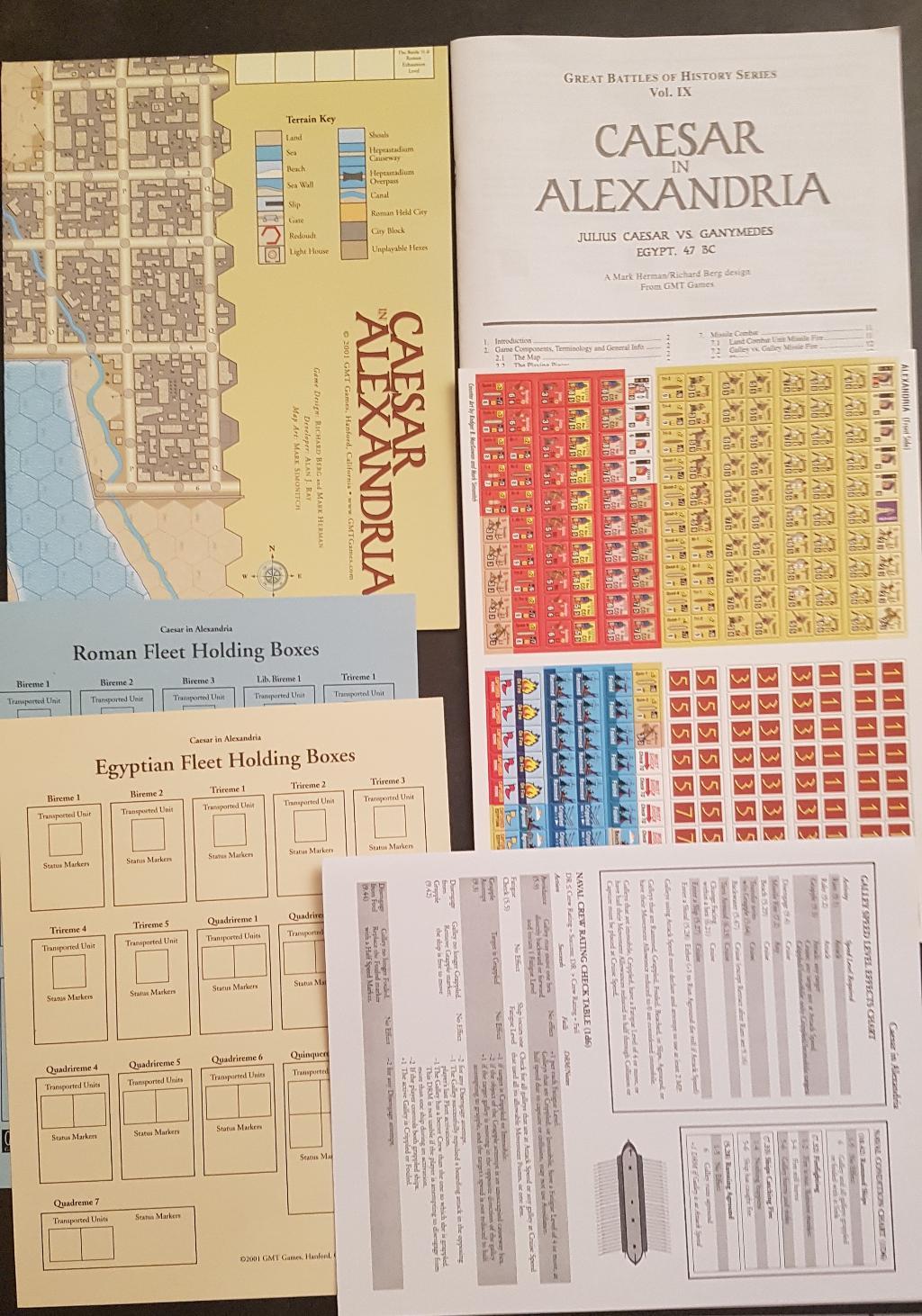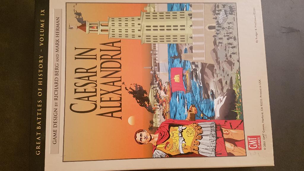 Jeu simulant la bataille d'Alexandrie (César contre les Égyptiens). Système Great Battles of History (simplifié). Jeu ouvert mais pions non dégrappés. Environ 280 pions, 1 carte, 1 règle, Aides de Jeu. Règle en anglais (scolaire) et règles en français disponibles sur le site ludistratège : http://www.ludistratege.com/