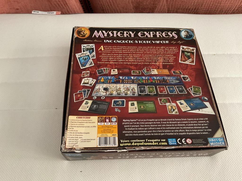 Peu après le départ de Paris en direction d'Istambul, un meurtre est commis. Aux joueurs de retrouver le coupable, le lieu et l'arme du crime mais aussi le moment où il a été perpétré et le mobile. Pour cela, les joueurs disposeront de la durée du voyage, c'est à dire cinq tours. Le vainqueur sera celui qui aura su rassembler le plus d'éléments à l'issue de la partie. Il n'est donc pas nécessaire de tout trouver pour l'emporter ni d'être frustré de se faire griller une découverte par un autre joueur aors qu'on vient aussi de la trouver. Tout est résolu simultanément à la fin. Selon les auteurs, "Mystery Express" nécessitera une approche plus analytique et précise que les autres jeux du genre.